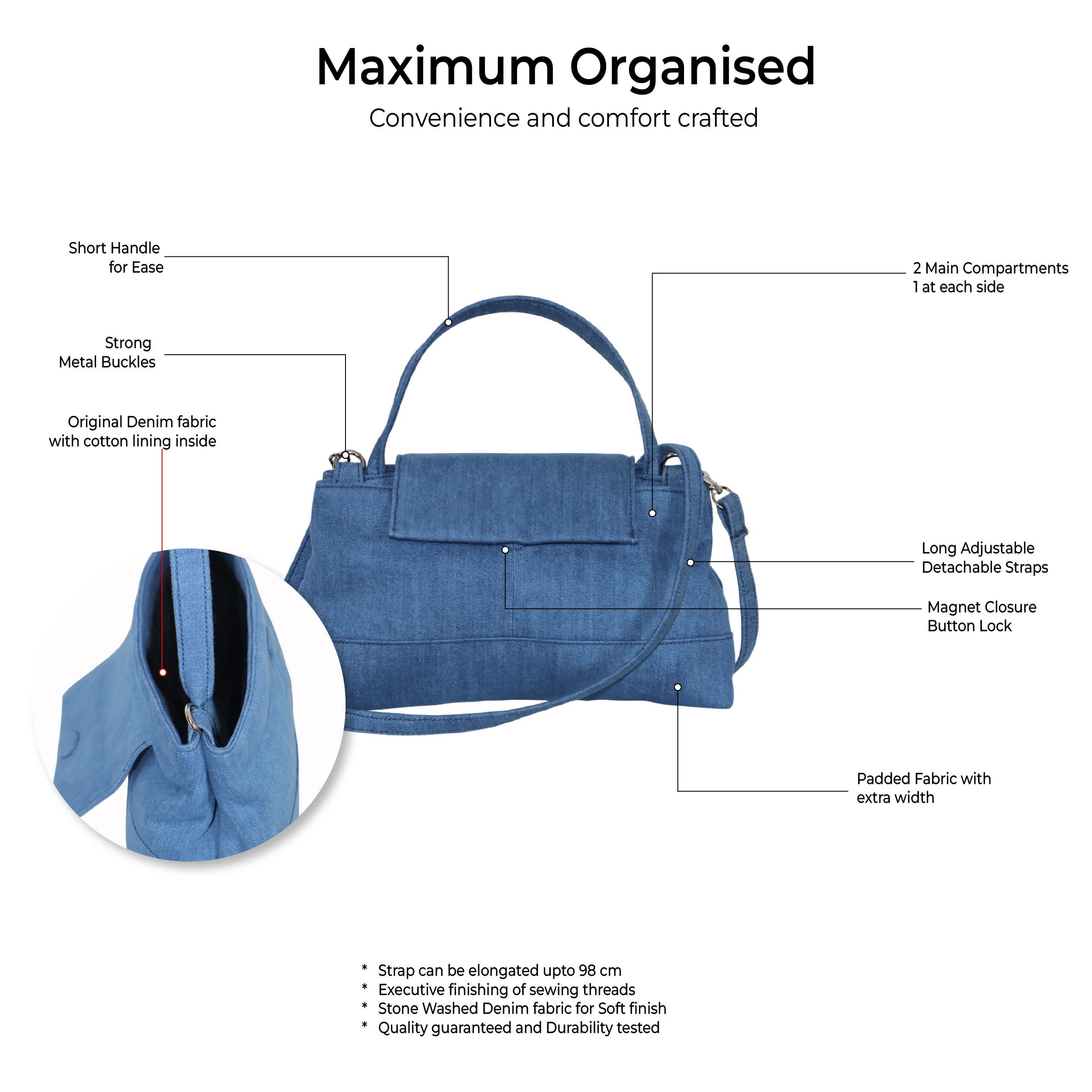 Elevate your everyday style with the Carri Original Denim Sling Bag, a perfect blend of functionality and fashion. Designed for the modern professional and student, this bag showcases a classic denim exterior that combines durability with a timeless aesthetic. The premium denim fabric not only offers a unique look but also ensures long-lasting wear, making it ideal for daily commutes or campus life. The bag features a softly padded interior lining that provides superior protection for your laptop, keeping it secure from scratches and bumps. With ample space for your Mobile, accessories, and daily essentials, this bag is both spacious and organized. The adjustable shoulder strap and sturdy handles allow for comfortable carrying, whether you're heading to work, school, or a coffee shop.