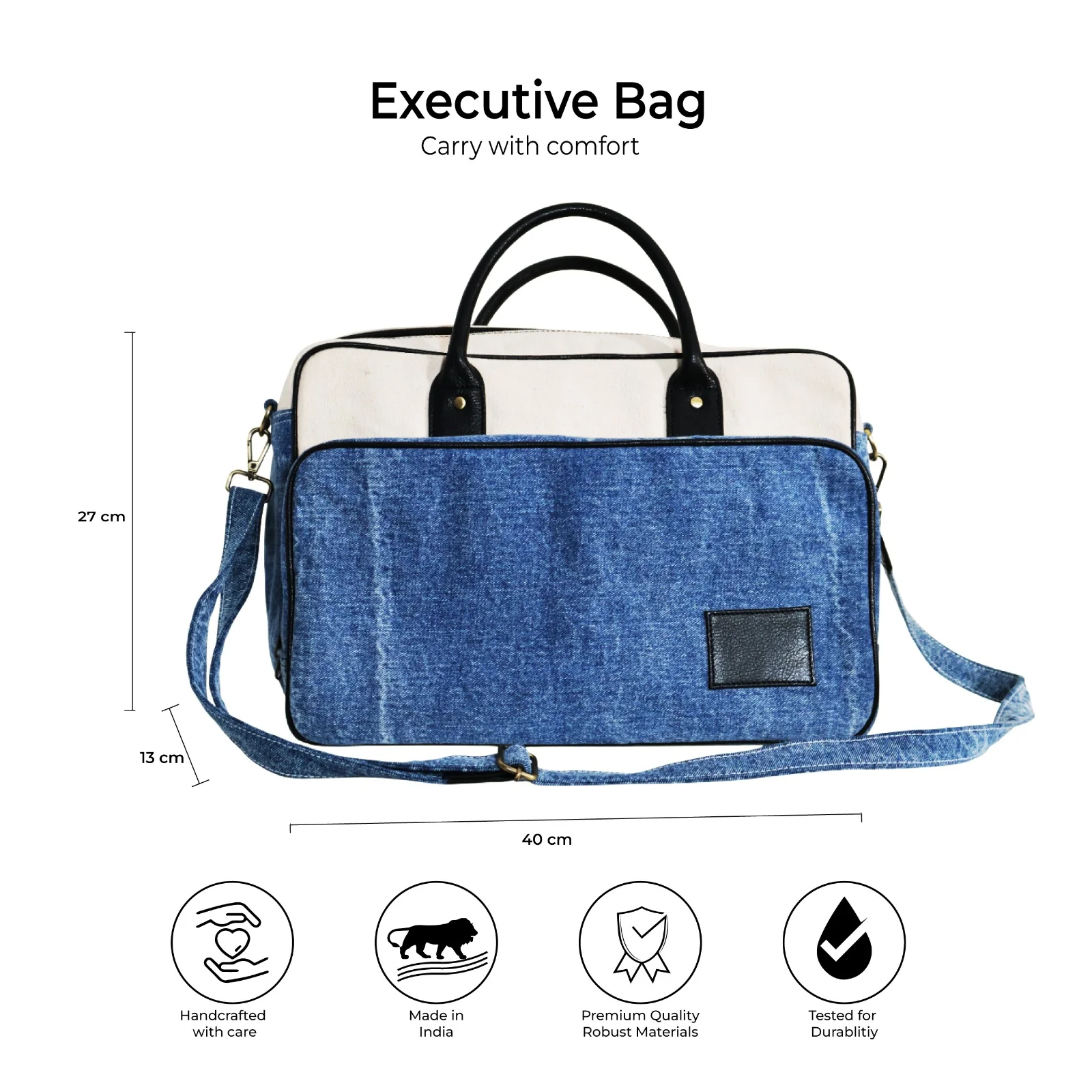 Elevate your everyday style with the Carri Original Denim Executive Bag, a perfect blend of functionality and fashion. Designed for the modern professional and student, this bag showcases a classic denim exterior that combines durability with a timeless aesthetic. The premium denim fabric not only offers a unique look but also ensures long-lasting wear, making it ideal for daily commutes or campus life. The bag features a softly padded interior lining that provides superior protection for your Things, keeping it secure from scratches and bumps. With ample space for your laptop, accessories, and daily essentials, this bag is both spacious and organized. The adjustable shoulder strap and sturdy handles allow for comfortable carrying, whether you're heading to work, school, or a coffee shop. Upgrade your carrying experience with the Carri Original Denim Executive Bag—a stylish choice that combines practical design with a chic, laid-back vibe.