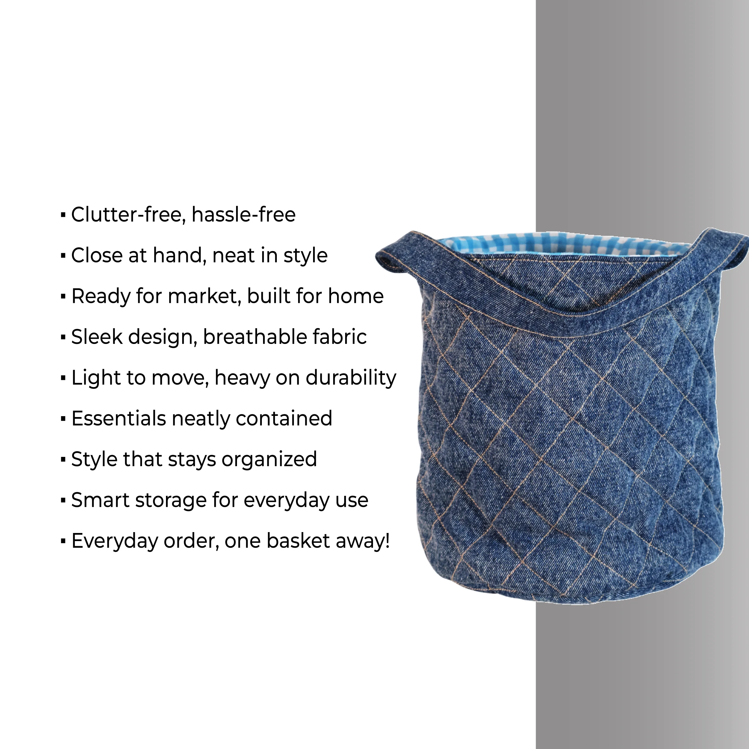 Elevate your everyday style with the Carri Original Denim Cloth Basket, a perfect blend of functionality and fashion. Designed for the modern Household, this basket showcases a classic denim exterior that combines durability with a timeless aesthetic. The premium denim fabric not only offers a unique look but also ensures long-lasting wear, making it ideal for daily commutes or campus life. The bag features a softly padded interior lining that provides superior protection for your Accessories, keeping it secure from scratches and bumps. With ample space for your cloths, accessories, and daily essentials, this bag is both spacious and organized.Upgrade your carrying experience with the Carri Original Denim Cloth Basket—a stylish choice that combines practical design with a chic, laid-back vibe.