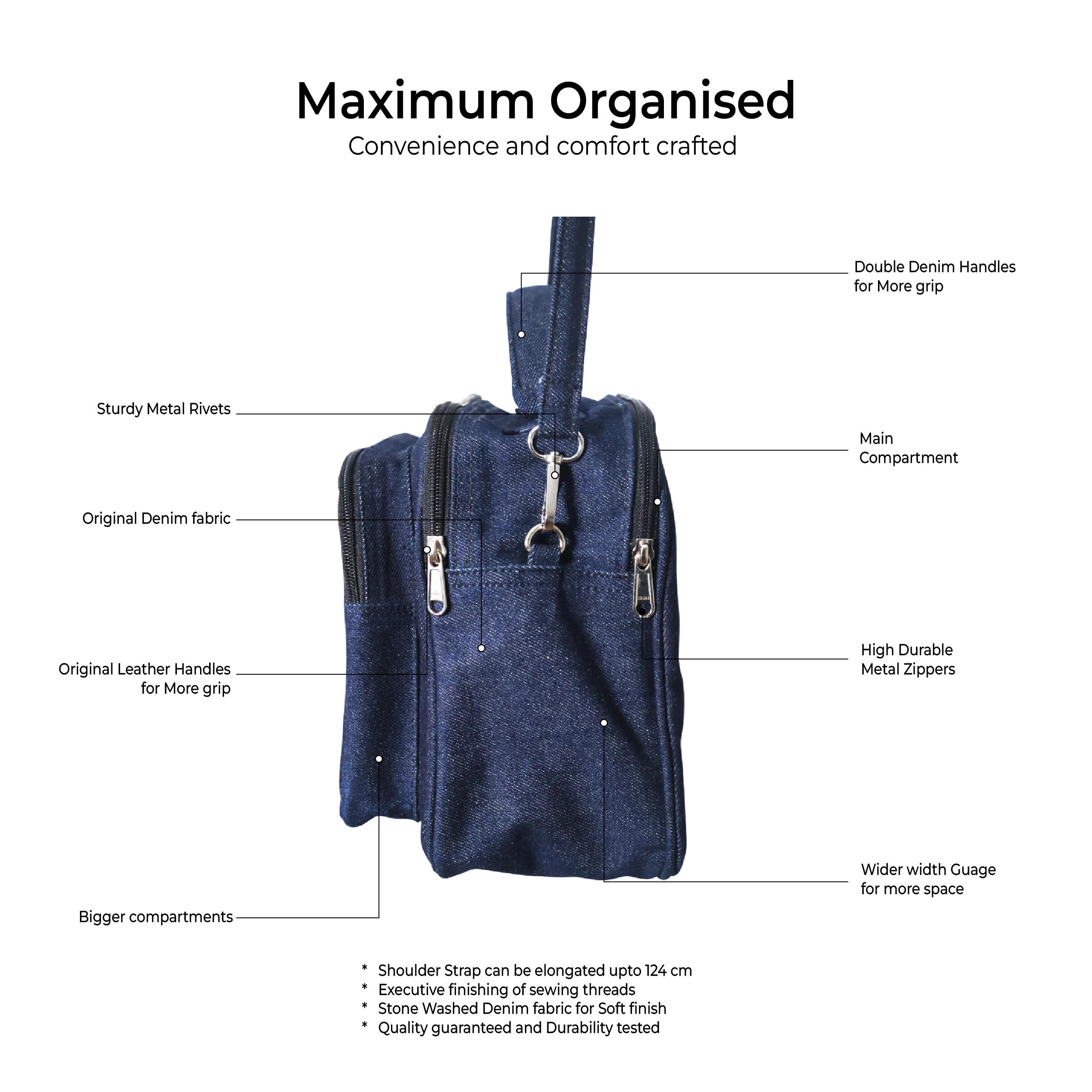 Elevate your everyday style with the Carri Original Denim Mini Executive Bag, a perfect blend of functionality and fashion. Designed for the modern professional and student, this bag showcases a classic denim exterior that combines durability with a timeless aesthetic. The premium denim fabric not only offers a unique look but also ensures long-lasting wear, making it ideal for daily commutes or campus life. The bag features a softly padded interior lining that provides superior protection for your Things, keeping it secure from scratches and bumps. With ample space for your books,tab, accessories, and daily essentials, this bag is both spacious and organized. The adjustable shoulder strap and sturdy handles allow for comfortable carrying, whether you're heading to work, school, or a coffee shop. Upgrade your carrying experience with the Carri Original Denim Executive Bag—a stylish choice that combines practical design with a chic, laid-back vibe.