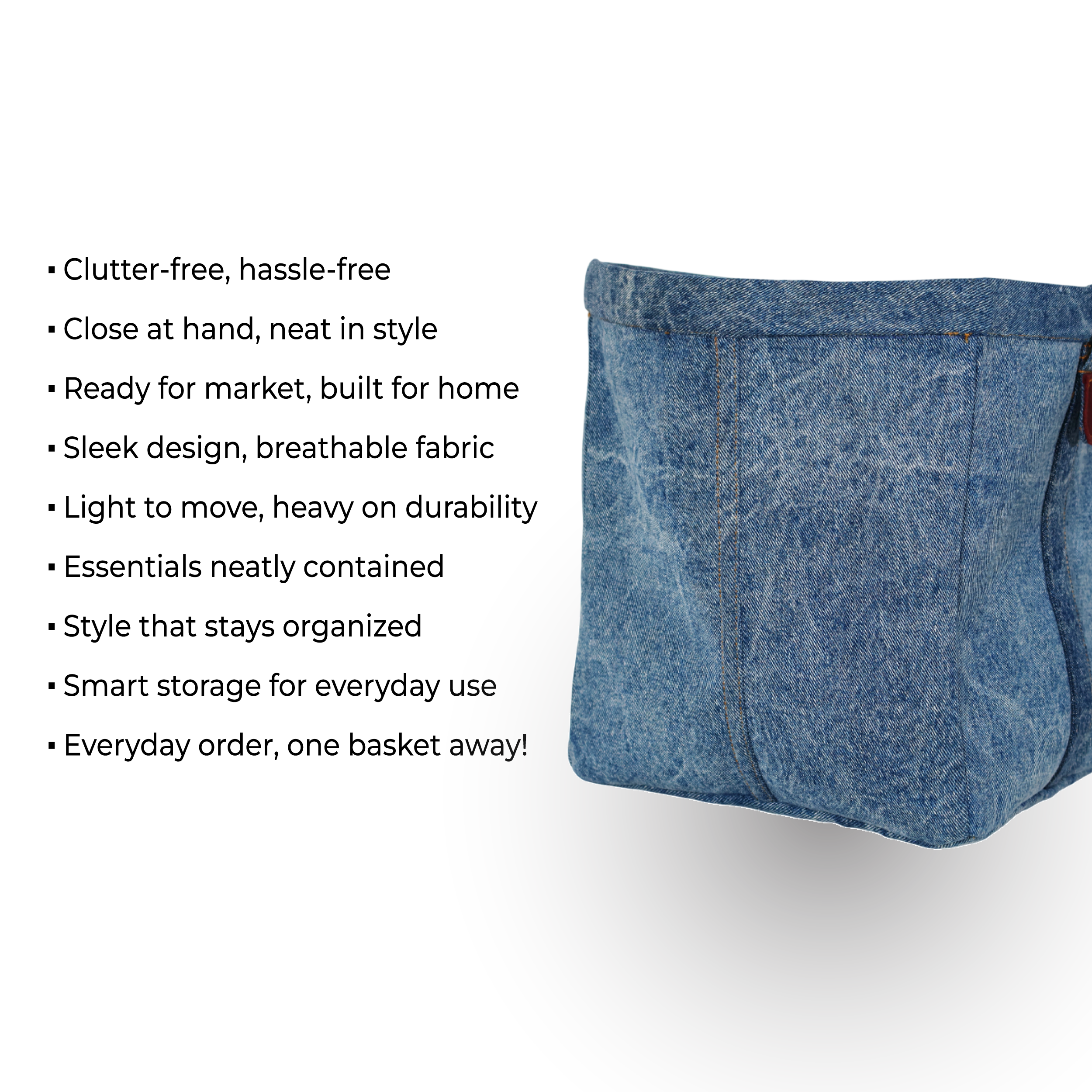 Elevate your everyday style with the Carri Original Denim Cloth Basket, a perfect blend of functionality and fashion. Designed for the modern Household, this basket showcases a classic denim exterior that combines durability with a timeless aesthetic. The premium denim fabric not only offers a unique look but also ensures long-lasting wear, making it ideal for daily commutes or campus life. The bag features a softly padded interior lining that provides superior protection for your Accessories, keeping it secure from scratches and bumps. With ample space for your cloths, accessories, and daily essentials, this bag is both spacious and organized.Upgrade your carrying experience with the Carri Original Denim Crossbody Bag—a stylish choice that combines practical design with a chic, laid-back vibe.