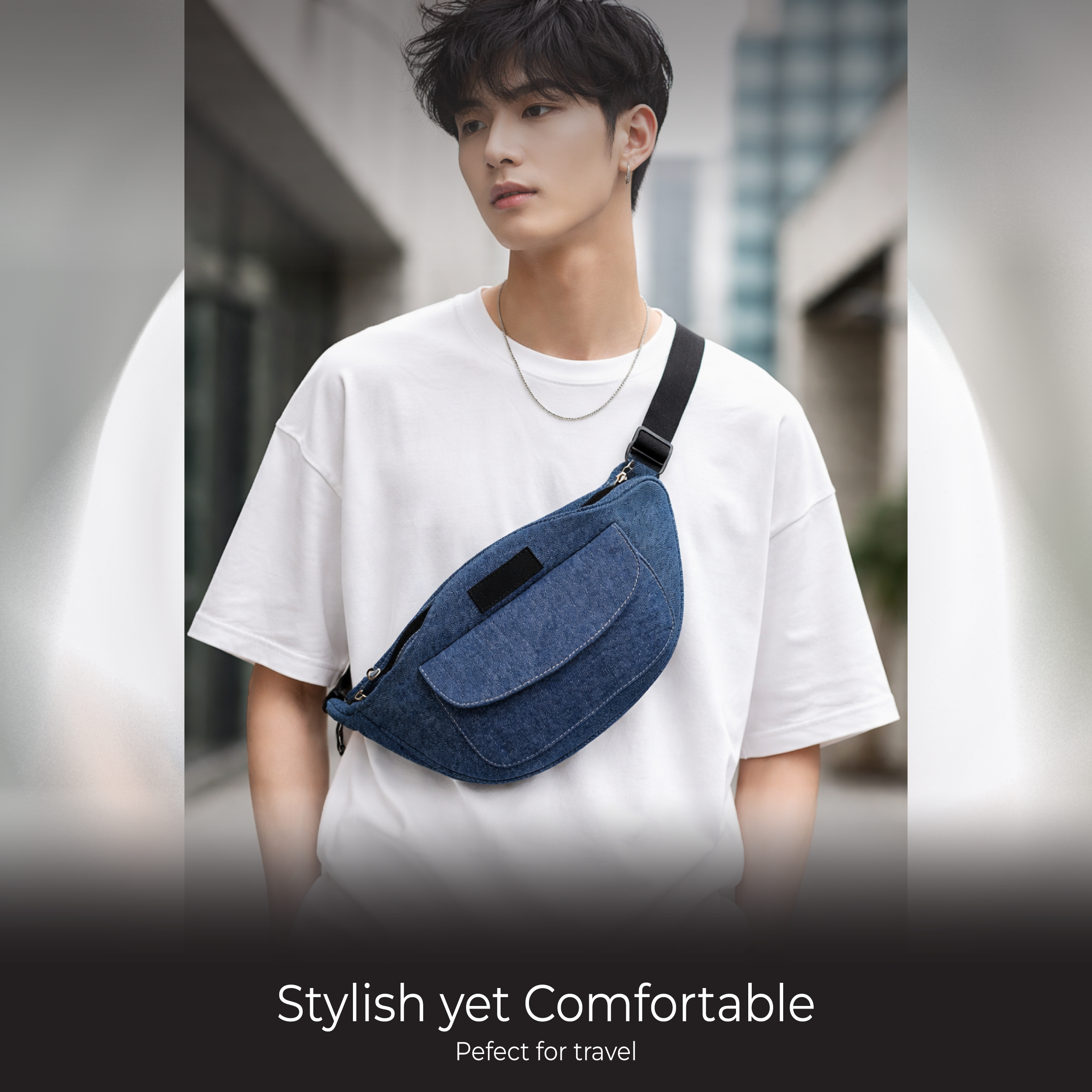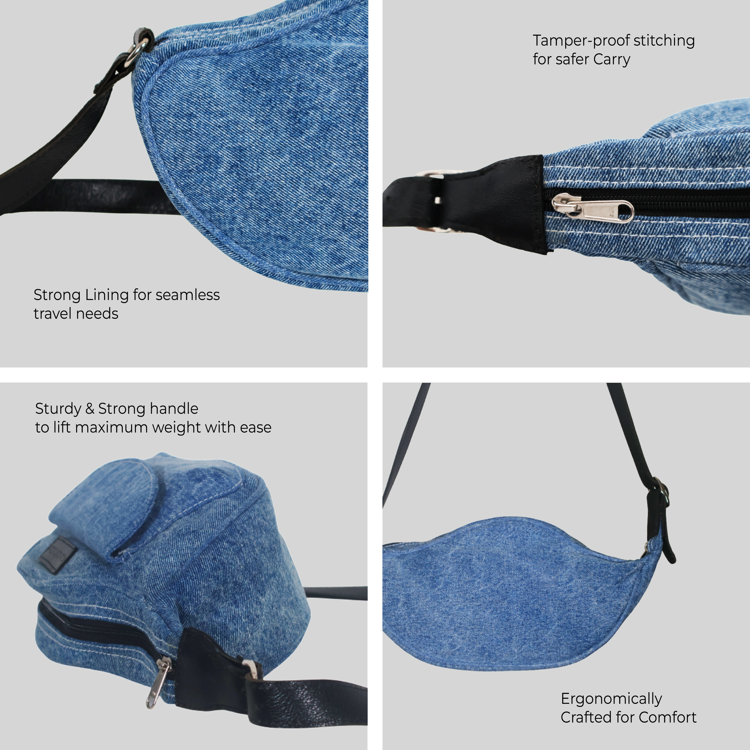 Elevate your everyday style with the Carri Original Denim Crossbody Bag, a perfect blend of functionality and fashion. Designed for the modern professional and student, this bag showcases a classic denim exterior that combines durability with a timeless aesthetic. The premium denim fabric not only offers a unique look but also ensures long-lasting wear, making it ideal for daily commutes or campus life. The bag features a softly padded interior lining that provides superior protection for your laptop, keeping it secure from scratches and bumps. With ample space for your Mobile, accessories, and daily essentials, this bag is both spacious and organized. The adjustable shoulder strap and sturdy handles allow for comfortable carrying, whether you're heading to work, school, or a coffee shop.