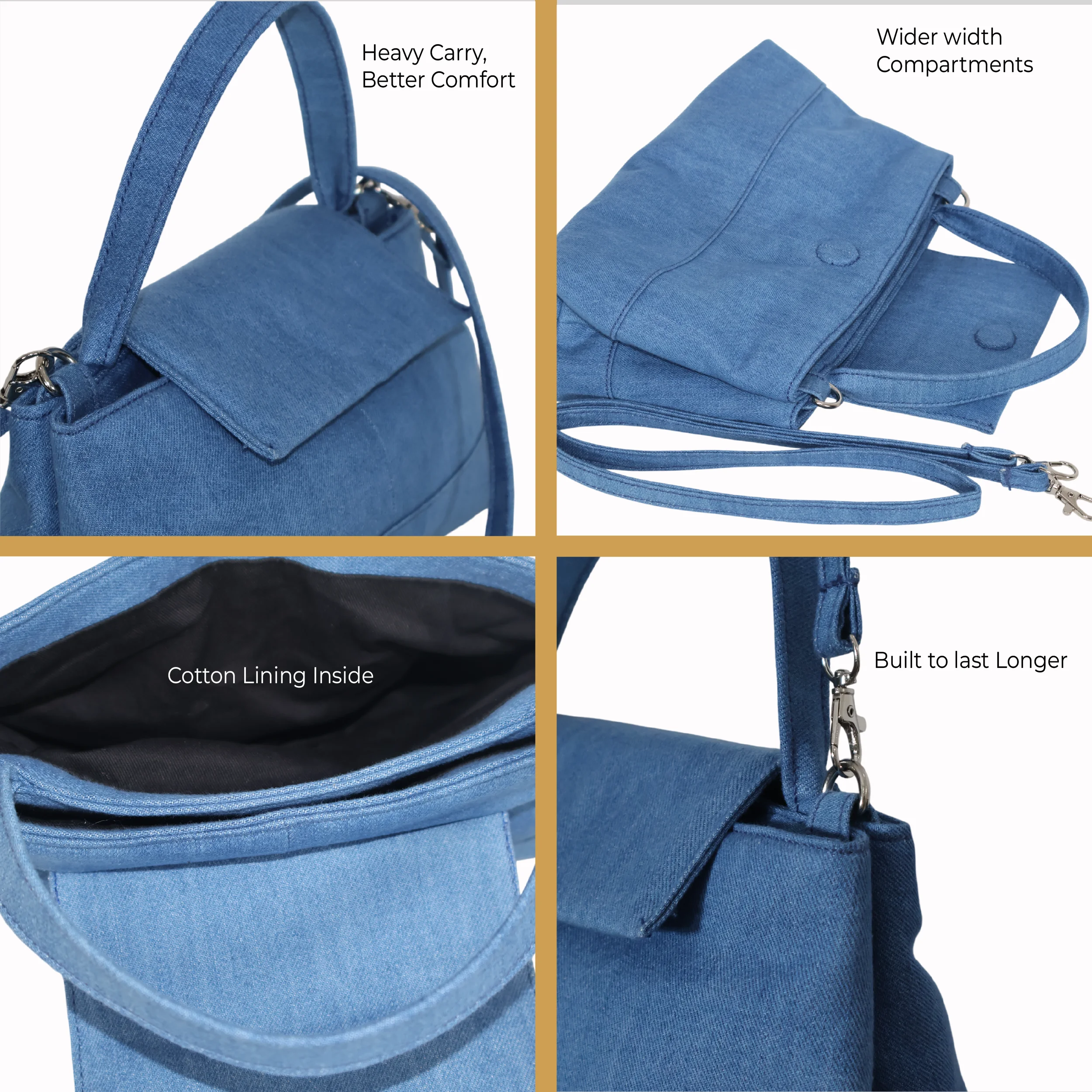 Elevate your everyday style with the Carri Original Denim Sling Bag, a perfect blend of functionality and fashion. Designed for the modern professional and student, this bag showcases a classic denim exterior that combines durability with a timeless aesthetic. The premium denim fabric not only offers a unique look but also ensures long-lasting wear, making it ideal for daily commutes or campus life. The bag features a softly padded interior lining that provides superior protection for your laptop, keeping it secure from scratches and bumps. With ample space for your Mobile, accessories, and daily essentials, this bag is both spacious and organized. The adjustable shoulder strap and sturdy handles allow for comfortable carrying, whether you're heading to work, school, or a coffee shop.
