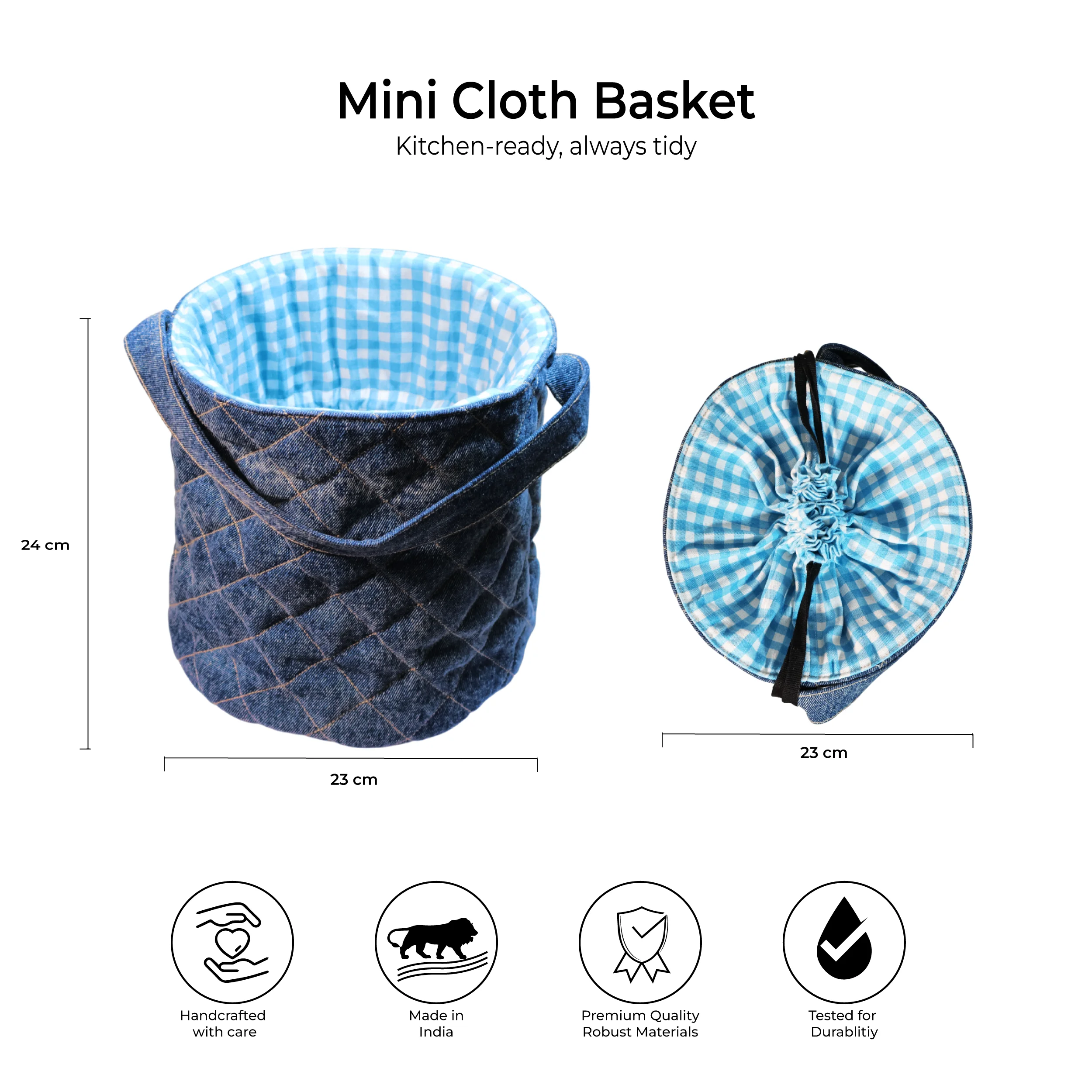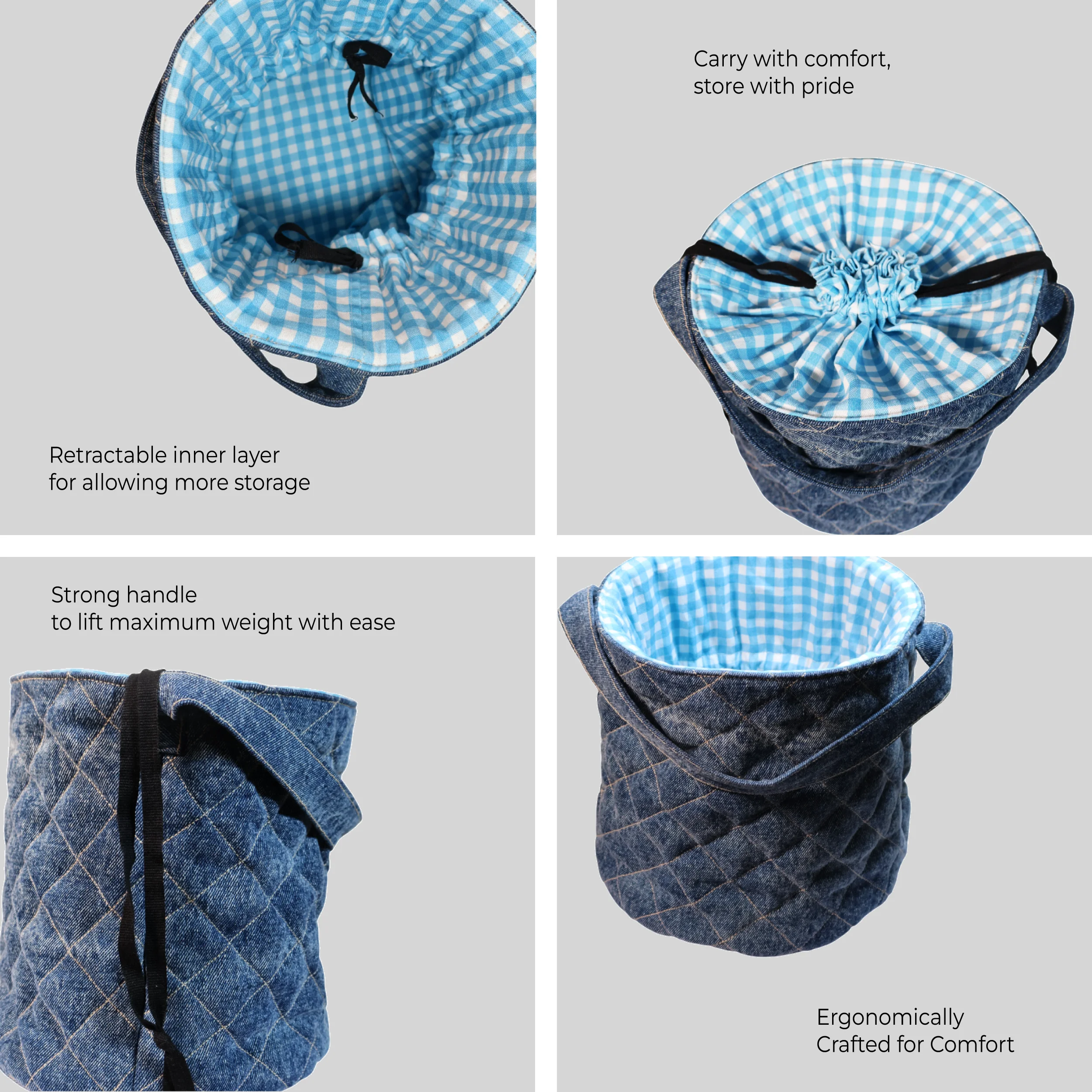 Elevate your everyday style with the Carri Original Denim Cloth Basket, a perfect blend of functionality and fashion. Designed for the modern Household, this basket showcases a classic denim exterior that combines durability with a timeless aesthetic. The premium denim fabric not only offers a unique look but also ensures long-lasting wear, making it ideal for daily commutes or campus life. The bag features a softly padded interior lining that provides superior protection for your Accessories, keeping it secure from scratches and bumps. With ample space for your cloths, accessories, and daily essentials, this bag is both spacious and organized.Upgrade your carrying experience with the Carri Original Denim Cloth Basket—a stylish choice that combines practical design with a chic, laid-back vibe.
